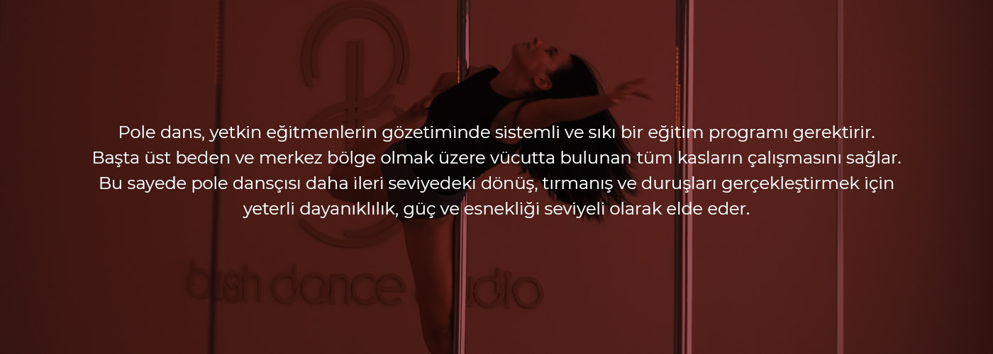 Pole dans, yetkin eğitmenlerin gözetiminde sistemli ve sıkı bir eğitim programı gerektirir. Başta üst beden ve merkez bölge olmak üzere vücutta bulunan tüm kasların çalışmasını sağlar. Bu sayede pole dansçısı daha ileri seviyedeki dönüş, tırmanış ve duruşları gerçekleştirmek için yeterli dayanıklılık, güç ve esnekliği seviyeli olarak elde eder.